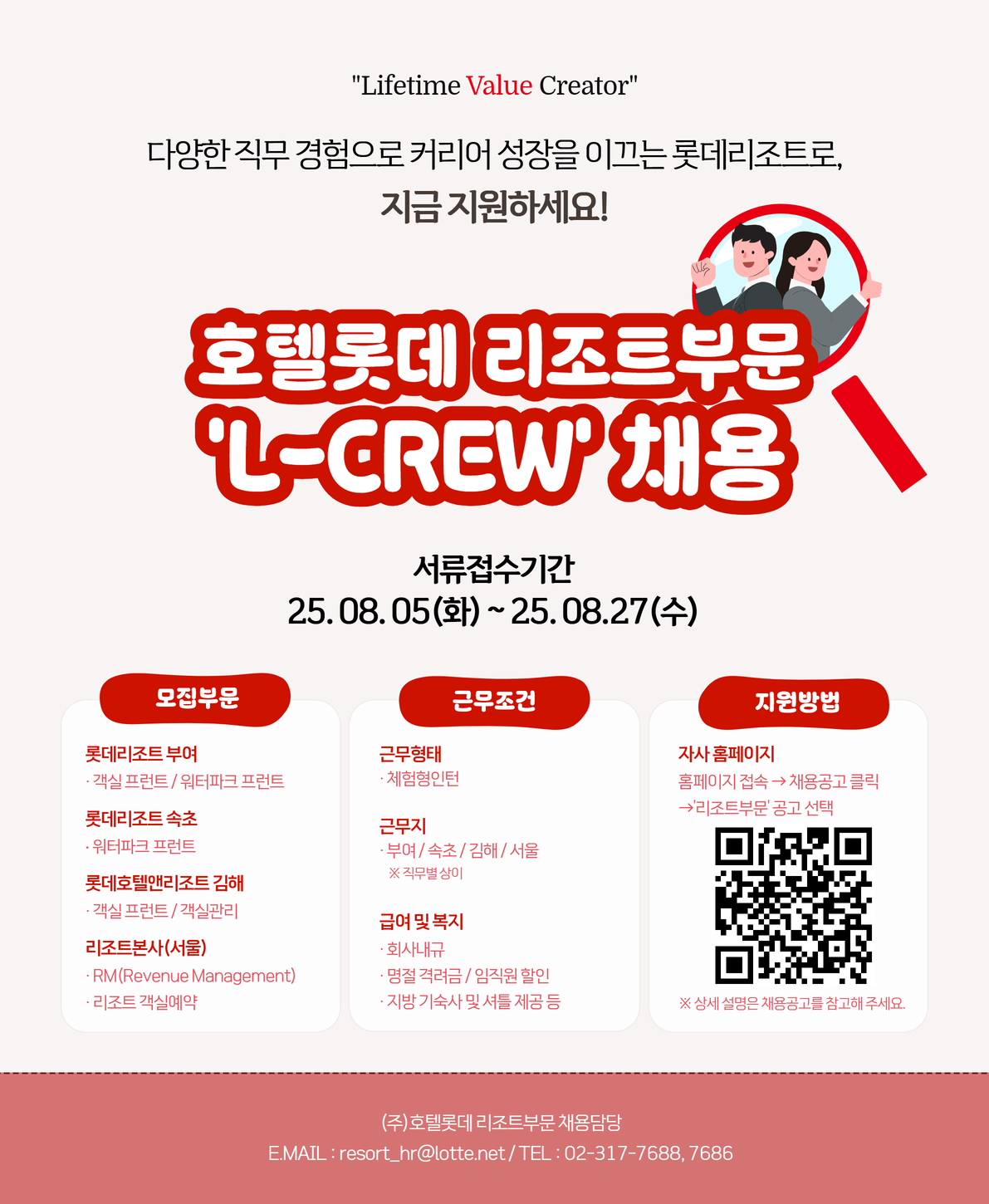 [롯데호텔앤리조트 김해] 25년 3분기 체험형인턴 채용