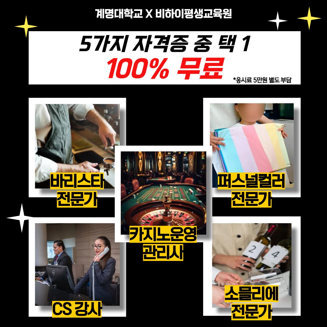 - 바리스타 전문가 / 소믈리에 전문가 / CS 강사 / 퍼스널컬러 강사 / 카지노 운영 관리사