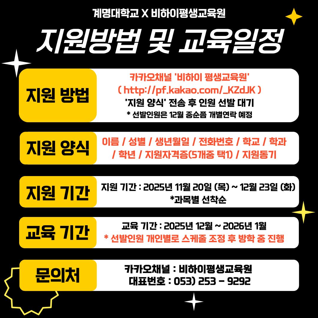 📌 지원기간: 2025. 11. 20 (목) ~ 12. 23 (화) (* 과목별 선착순)