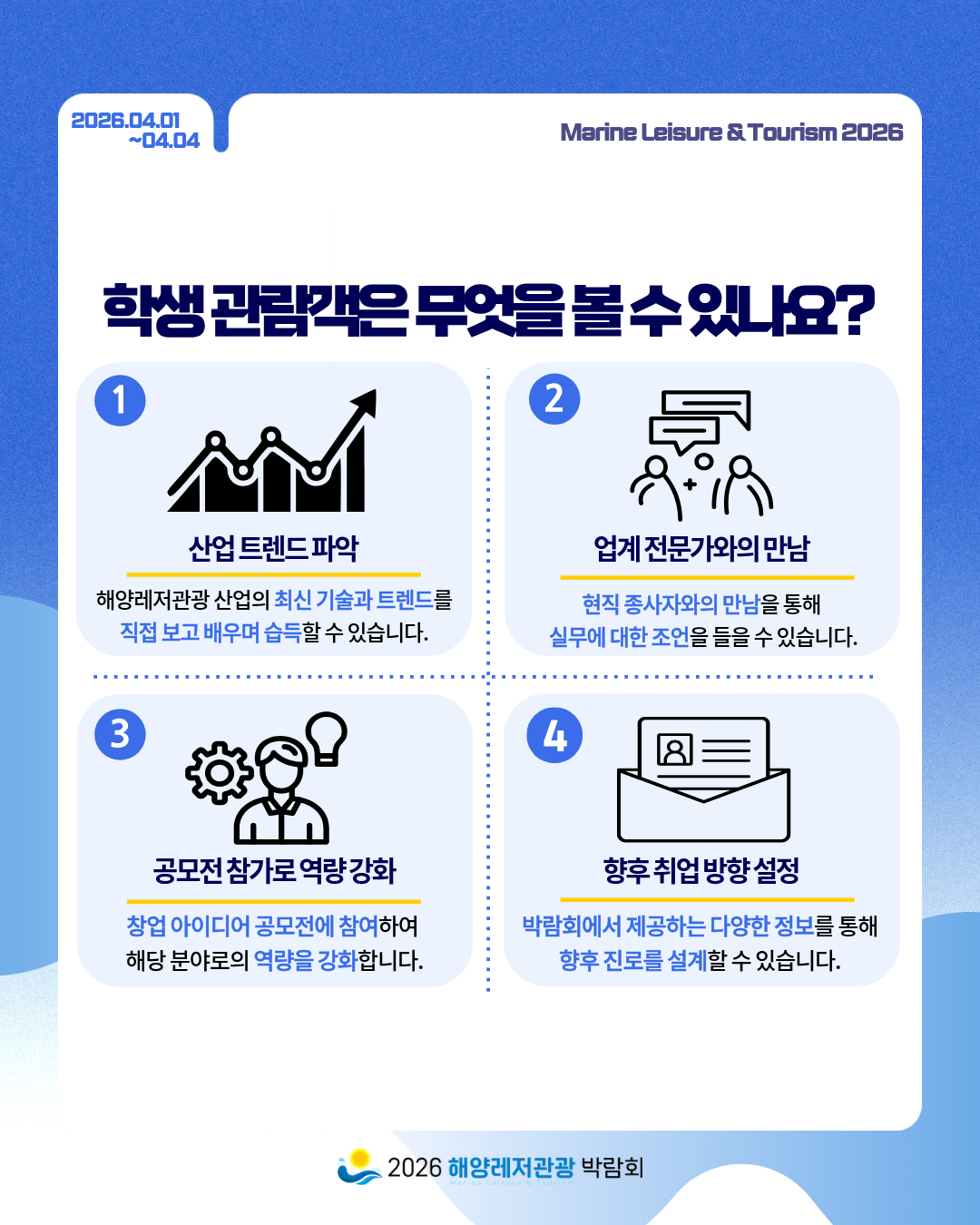 - 우수한 홍보 역량을 갖춘 인재를 발굴하여 해양레저관광 산업 관심 제고 및 박람회 홍보 효과 강화를 위함